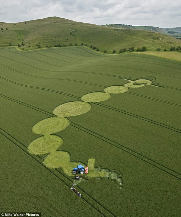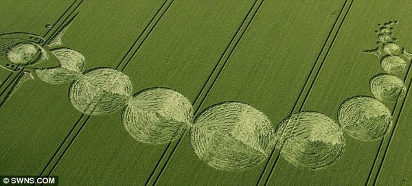 麦田怪圈一直激发着无数人的想象力,对于它们到底是外星人的杰作还是借助GPS装置的人造物,人们仍存在分歧。麦田怪圈的图案大小不一,小的只有几英寸,大的可达到数百英尺,覆盖20万平方英尺(约合18580平方米)的区域。