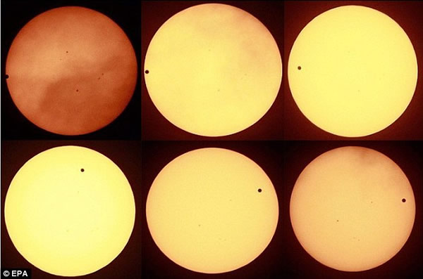 金星凌日现象在金星于地球和太阳之间穿过时出现