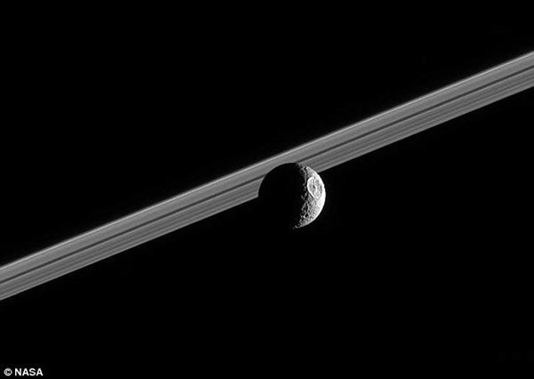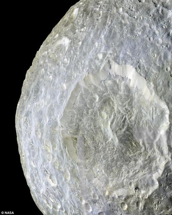 这是星球大战中的死星吗?庆幸的是,这仅是土星的卫星——土卫一,它位于土星环状结构区域