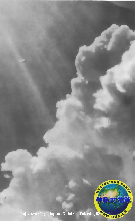 1957年日本藤泽市上空出现的UFO 来源: 神秘的地球 时间:2007年9月16日 13:37 1957年8月20日,在日本藤泽市,人们在高空中看到一个发光的不明飞行物,后来这个UFO以90度左转,高速离开,消失在云雾中。 上一篇 下一篇 TAG: UFO 日本
