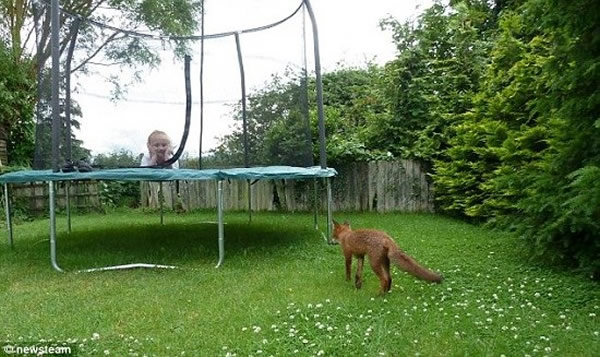 莉迪亚玩蹦床时小狐狸会在一旁跳来跳去