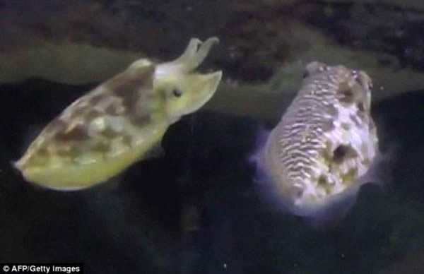 科学家观察到一种拥有换装功能的墨鱼,它们能在交配的过程中利用自己的技巧来带来便利。换装墨鱼用身体的一面变成一般雌性墨鱼冷漠样子来迷惑潜在的竞争者,同时身体的另一面表现出相当艳丽的“充满肌肉、强健有力的”色彩,用来吸引交配对象的注意力。这种行为来自于一种雄性墨鱼,是澳大利亚东海岸普遍存在的一种生物。这种行为的目的是为了增加吸引到与之交配的异性的成功率,这种短命物种的雌性非常挑剔,而且同时雄性竞争者又是数量众多,难怪这种生物会进化出这样的功能。