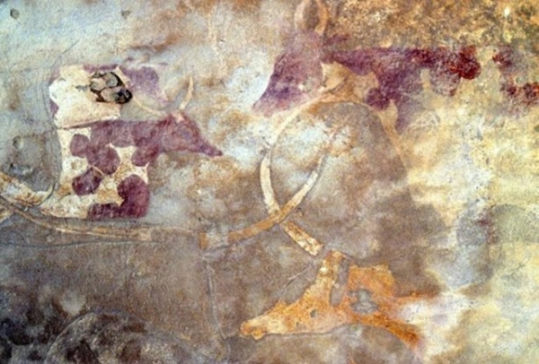 一个反映被驯化的牛的岩画距今已5,000 到8,000年,是在利比亚撒哈拉沙漠Tadrart Acacus山的Wadi Imha地区发现的。