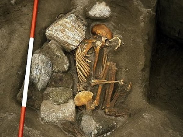 《国家地理》杂志的报告指出,通过同位素标记和DNA鉴定,这些骨架是不同的人的骨骼组合而成的。测试还显示,这些骨架是在死者去世600年后才被拼接埋葬的,显然是有人故意为之。