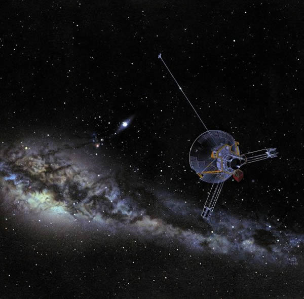 艺术示意图:先驱者号飞船正飞向太阳系的边缘