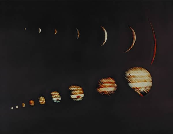 1973年12月4日,科学家们一片欢腾:随着先驱者10号飞船高速接近木星,它发回的图像上木星显得越来越大,越来越清晰。PICS(先驱者图像转换系统)开始工作,它的屏幕上先是显示出一个点,随后点越来越多,图像开始显现,是一轮弯月般的木星。科学家们欢呼起来,称它是“木星日出”。随后,当探测器逐渐远离木星时,它发回的图像上的木星又逐渐缩小,渐渐消失