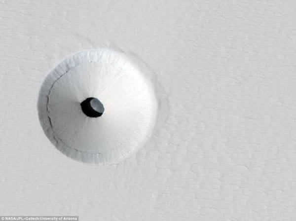 科学家们根据这幅照片以及后续传回的系列照片进行分析,结果表明这个洞口直径大约为35米。内部的阴影角度表明,下方的洞穴深度大约为20米。为什么会在洞穴周围出现一个圆形的陨石坑?这个问题引起了科学家们的思考和猜测。此外,科学家们对这个洞穴之所以如此感兴趣,原因在于这样的洞穴,其内部可以免受火星表面恶劣环境的影响和破坏,应该是火星生命生存较为理想的环境。