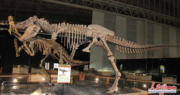 中国山东省诸城市出土的中国角龙全身骨骼化石标本(复制品)。