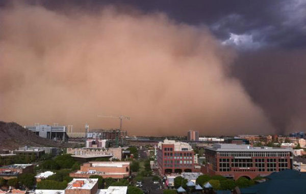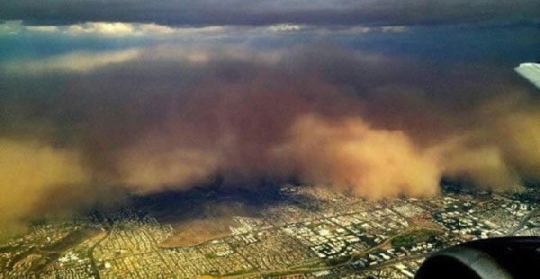 哈布沙尘暴席卷美国凤凰城 来源: 神秘的地球 时间:2012年7月26日 10:51 哈布沙尘暴席卷美国凤凰城 哈布沙尘暴席卷美国凤凰城 哈布沙尘暴席卷美国凤凰城 哈布沙尘暴席卷美国凤凰城 哈布沙尘暴席卷美国凤凰城 当地时间2012年7月21日,哈布沙尘暴席卷美国凤凰城,碧蓝的天空顿时顿时变成了暗红色,场面恐怖无比。哈布沙暴在阿拉伯语中就是大规模沙尘暴的意思。据美国官方天气报告显示,此次沙暴高度约为600米,造成凤凰城机场封闭20分钟,有关部门没有收到人员伤亡报告。 上一篇 下一篇 TAG: 美国 沙尘暴