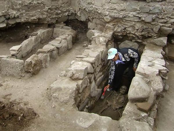 据美国国家地理网站报道,保加利亚国家历史博物馆考古学家上个月在保加利亚黑海之滨小镇索佐波尔镇挖掘出土两具700年前古尸遗骸。怪异的是,考古学家发现,两具遗骸不仅仅被铁棒从胸部穿透钉在墓中,而且其牙齿也全部被拔光。研究人员认为,这一发现证明古人对吸血鬼恐惧的历史要远远早于吸血鬼小说鼻祖布莱姆-斯托克的著名作品《吸血鬼伯爵德古拉》。