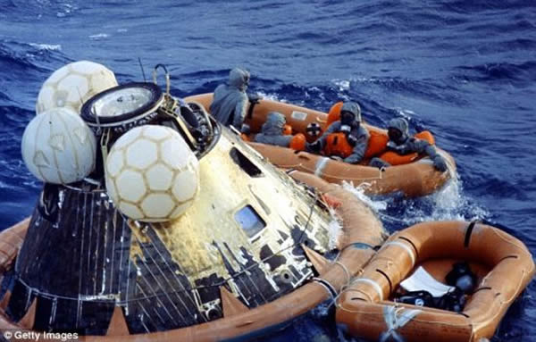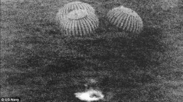 阿波罗11号太空舱在距离夏威夷海岸大约1000英里(约合1600公里)的太平洋海域降落