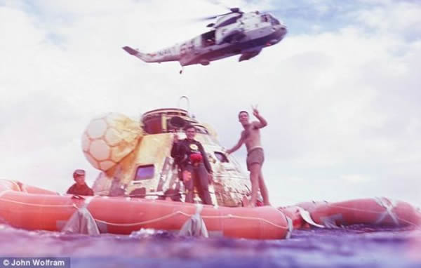 沃尔弗拉姆站在上下浮动的返回舱上,他心里很清楚,阿波罗11号内的太空开拓者们的命运就掌握在他的手中。沃尔弗拉姆回忆说:“我透过舱门窗户往里看,看看宇航员是否一切安好。他们朝着我微笑,还竖起大拇指。这是我第一次亲眼见到他们,他们一切正常。”沃尔弗拉姆和他的3位队友毕业于海军海豹精英训练学校,是最出色的海豹突击队员。在执行这项任务前,他们接受了几个月的训练,还曾是此前阿波罗号任务的营救小组成员。