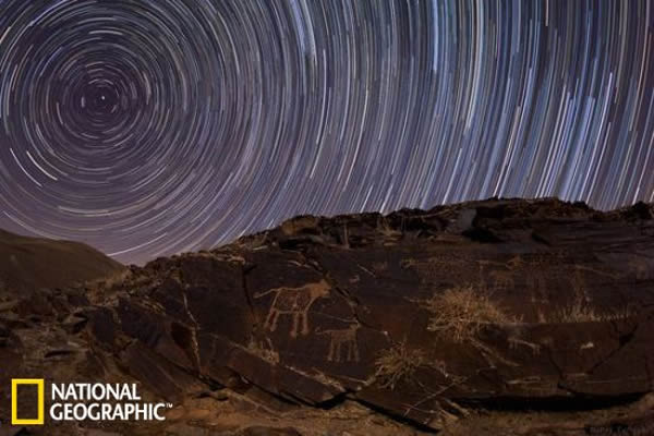 美国国家地理一周太空图片精选:旋转星空照亮古老岩画