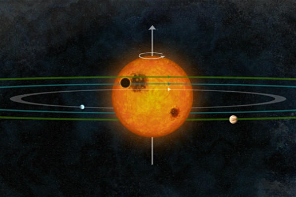 在太阳系中,太阳的赤道和行星的轨道平面几乎是在同一方向排列的。这可能反映了它们的形成方式:它们是从一个自旋的气体盘形成的。很多太阳系外行星系统并没有显示出这种一致性,孤立“热木星”的轨道平面经常与其恒星的赤道不在同一方向上,甚至有逆行轨道。