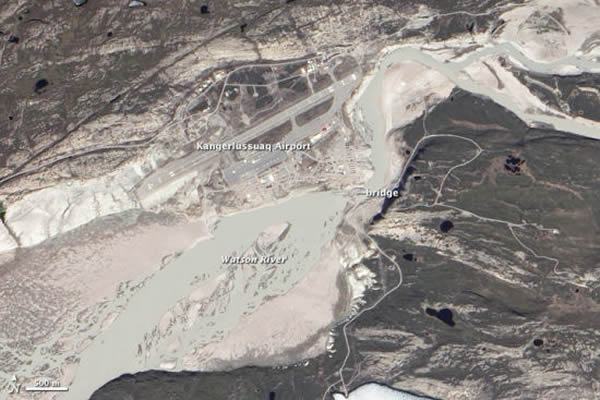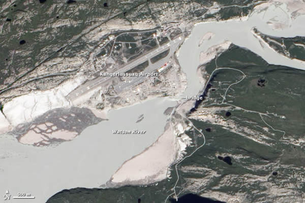 在机场东南边,沃森河的一段狭窄河道上有一座桥。据说这座桥建于20世纪50年代。俄亥俄州立大学伯德极地研究中心(Byrd Polar Research Center)科学家詹森·博克斯(Jason Box)说:“在以前的格陵兰冰原融冰高峰年中,我怀疑这座桥的年龄屈指可数。”博克斯强调,在过去的十几年中,格陵兰冰原在春夏季节的融冰程度加剧。