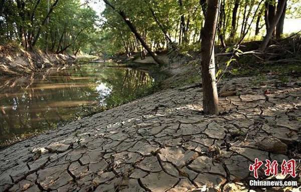当地时间2012年7月16日,美国伊利诺伊州Grayville,小河岸边龟裂的土地。美国海洋与大气管理局当天在网站上发布报告称,根据帕尔默干旱指数,中西部严重干旱覆盖了美国本土55%的面积,是1956年来美国最严重的干旱天气。美国农业和畜牧业受到直接影响,玉米等主要粮食产量和质量预计将大幅下降,粮价出现波动。