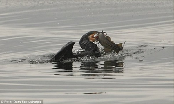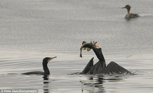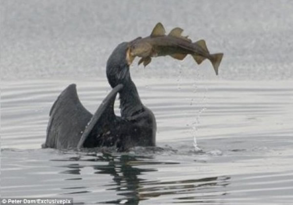 鸬鹚捉到的鳕鱼比自己喉咙还粗