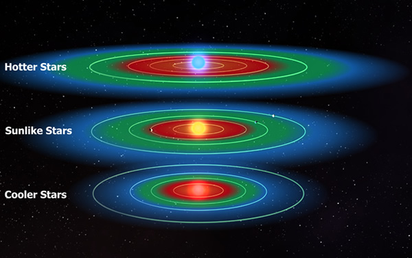 研究人员报告说,尤其是恒星上的氧的丰度似乎对于决定新形成的行星能够在其母星周围处于宜居区域多久至关重要。例如,如果我们的太阳所具有的氧丰度较低的话,地球恐怕在10亿年前便已经离开了太阳系中的宜居区域,这远远早于复杂有机体的进化时间。