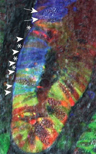 转基因小鼠的多色肠道组织使得科学家能够追踪引发肿瘤的细胞。