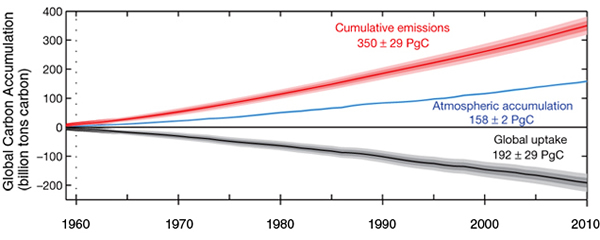 为了造福我们生存的这个星球,地球上的海洋、植物和土壤吸收了大约一半的人类通过燃烧化石燃料排放到大气中的二氧化碳。如果没有这些碳汇以其正常的速率运行,那么额外的温室气体将会使全球变暖的效应更为强烈。