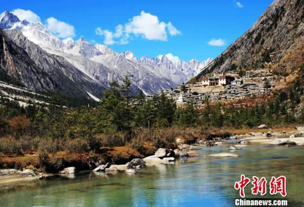 冷古寺(藏语称岗波丹萨寺)位于理塘县西边,背椅海拔5807米的肖札山,面对海拔6224米的格聂山。该山周围约1200平方公里,传说是观世音菩萨的圣地。“冷谷意为圣地之门,由噶玛噶举派都松钦巴创建于公元1164年,七世噶玛巴曲札降措扩建成为噶玛噶举派三大寺之一。”理塘县文旅广体局副局长泽仁旺堆说,该寺僧众最多时达2000余人。