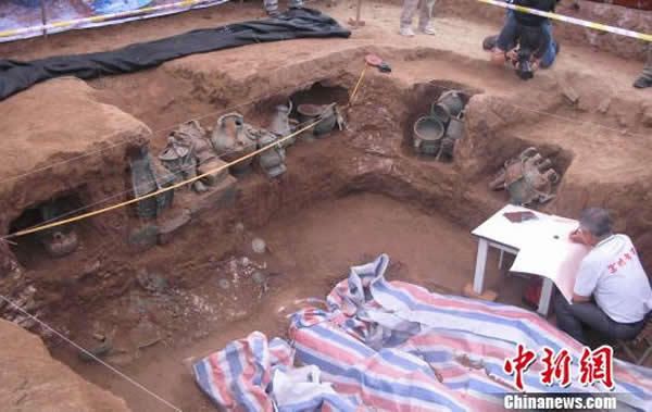 西周墓葬青铜器发掘现场