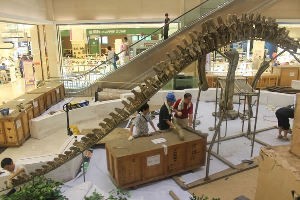伴随着万千市民的期待,岳阳步步高广场“恐龙化石展”布展的第一步顺利完成。今日,体型最大的“天府峨眉龙”完成初步定型工作,本月10日,市民将可看到精彩的恐龙展。
