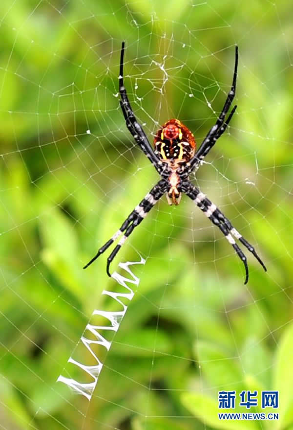 江西发现一只会“写”英文字母的蜘蛛 来源: 神秘的地球 时间:2012年8月07日 14:00 江西发现一只会“写”英文字母的蜘蛛 8月5日,在江西省南昌市湾里区梅岭镇,一只花色蜘蛛吸引了在场不少人的眼球,尤其是这只蜘蛛编织的一张大网左下角形似一连串英文字母的图案让人惊讶。 新华社 周科 上一篇 下一篇 TAG: 蜘蛛