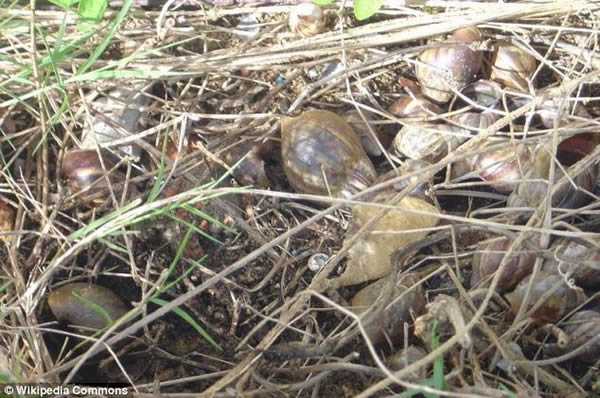 这些蜗牛一旦被老鼠咬过,大脑里就会长出许多长达6厘米的肺线虫。人们若误食后,便会引发脑膜炎,导致头痛,麻痹,痉挛,甚至死亡。目前,这种蜗牛已被国际自然保护联盟列入世界100种侵略性物种名单。