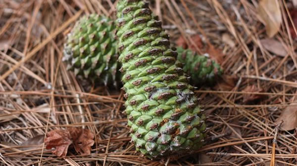 厚皮刺果松的锥形松球,它的种子在阿波罗14号任务中被宇航员带到了外太空
