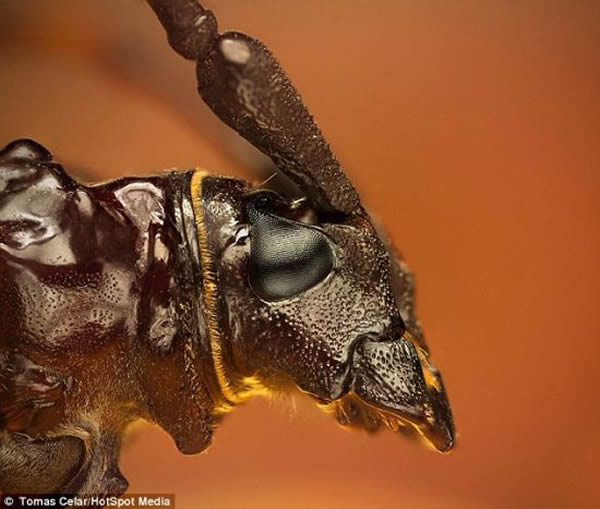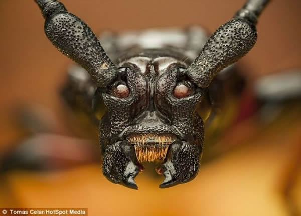 如果仔细观察这种天牛,它拥有长达4厘米的触须,这几乎和它的身子一样长,睁着泛着红色的眼睛直视着你。这张照片是在多米尼加共和国境内拍摄的,它的嘴巴大大地张开着,随时准备恭候下一位受害者。照片的摄影师是17岁的捷克摄影师托马斯·塞勒(Tomas Celar),当时他正在加勒比海地区度假。他向记者描述了他自己是多么幸运。因为这是他在这个国家两周时间内唯一一次见到这种昆虫。他说:“这是我见过的最像恶魔的生物。当我抓拍下这张照片时我还以为这看起来一定会很酷,但是当我将它放在电脑屏幕上导出来观看时才意识到它长得有多么可怕。”他说:“它长着一副大大的颚,还有长达4厘米的触须,这对于这样大小的一只昆虫来说真的很大。不过这种长角天牛在这里并不多,这只是我见到的唯一一只,当然我知道在加勒比和南美洲有很多这样的本地天牛。”