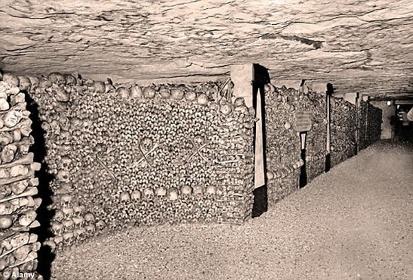 自18世纪七十年代早期开始,一些人类尸骨被转移至地下采石场,目前这个地下墓室已容纳600多万具尸骨。这一地下空间能够容纳数百年以来的尸骨残骸,但是这一保存方式也存在不利因素,这使得巴黎不得建造较高的建筑,由于这座城市街道下面存在着这个庞大的地下墓室,因此无法建造较大的建筑底基。