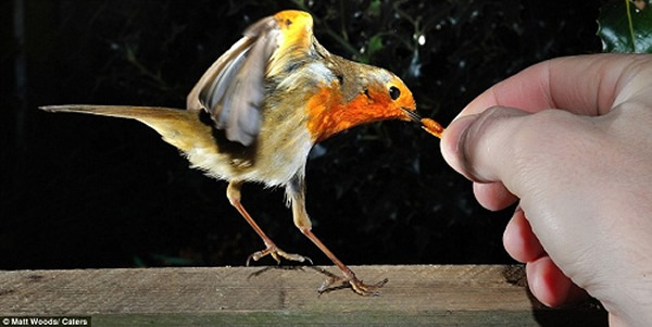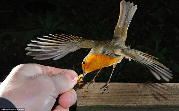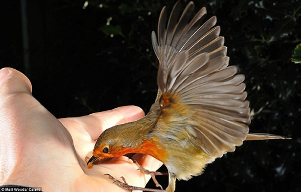 摄影师马特拍摄知更鸟在人类手中取食精彩画面