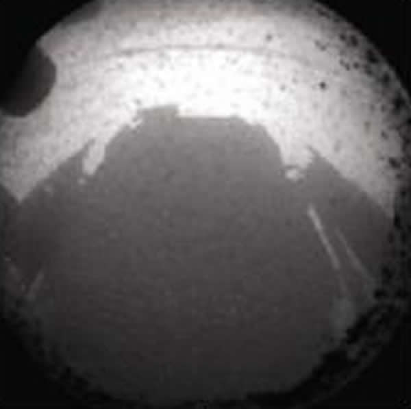几分钟后,火星车传回了它在火星表面上拍摄的第一张照片。照片很小,但再一次让控制室爆发出欢呼声。“那是轮子!那是轮子!”控制室里的某个人大喊。照片显示了这个六轮火星车的其中一个轮子正踩在火星的表面。
