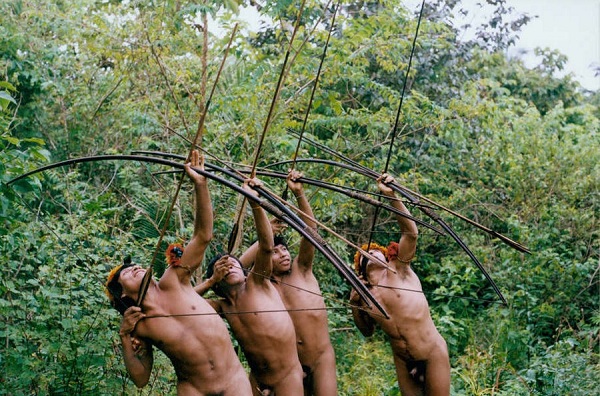 阿瓦部落位于巴西亚马逊地区,是世界上最濒危的部落之一,部落成员都是天生的射箭高手。他们常年生活于雨林中,夜间会手持树脂制成的火把穿越雨林。阿瓦人狩猎会带上一大捆自制的箭,他们所使用的弓长达1.85米,为等待猎物的出现,阿瓦猎人会蹲守于30米高的树枝上。