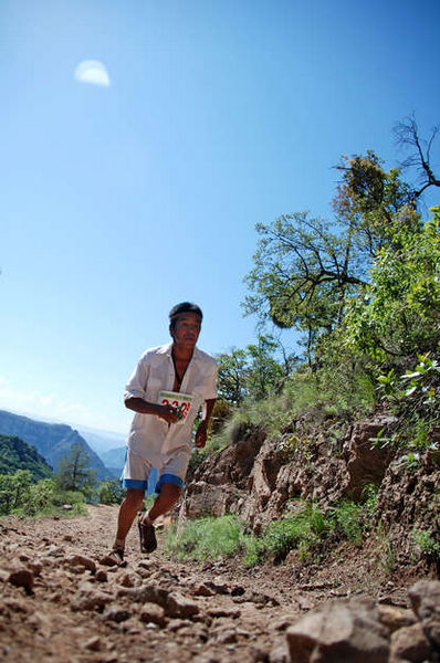 在墨西哥马德雷山脉的峡谷和沙漠的高地上,长距离耐力跑是塔拉胡马拉族人(Rarámuri)的一种生活方式。这个部落的名字Rarámuri实际上就是跑得快的意思。这里最受欢迎的塔拉乌马拉长跑竞赛就是arajípa,或称为踢球竞赛,在这个竞赛中男子需要不断地用脚掷球。比赛会持续48个小时,在高海拔崎岖陡峭的山路上进行,覆盖150-300公里的距离。照片由Jay Dunn摄。