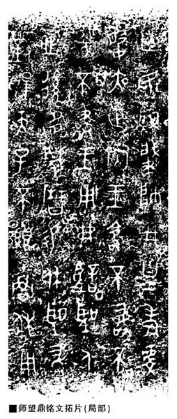 这当然只是我自己的主观看法,然而有一积极证据可说明铸造者非常重视铭文。在2005年,芝加哥艺术博物馆从香港的私人收藏家购买了著名的师望鼎。为了保证器的真实性,博物馆购买之前利用了各种科技办法来鉴定,包括全器的X光。从X光可以看出很有意思的现象,师望鼎是典型的西周晚期圆鼎,铭文列于圆腹的后壁,从口下往腹底。X光显示带有铭文后壁的青铜非常纯粹,几乎没有气泡。与此不同,铜器的前壁,也就是说没有铭文的那一面,含有许多气泡。因为铸造铜器的时候,注流的青铜在合范底下最集中、最纯粹,越往上流越堆有气泡。这些气泡会留下痕迹,甚至青铜凝滞以后在青铜器上也会造出小洞。为了确保师望鼎带有铭文的一面没有气泡,铸造者显然故意地将那一面放到合范的底下,这样气泡都显现于铜器的另一面,即使另一面是铜器的正面。这和我们一般理解合范的位置有所不同。师望鼎的X光说明西周时代铸造青铜器的人非常重视铭文,一定要让它完全无失显现出来。这说明不但是铭文内容重要,并且它的物质形式也特别重要。