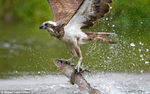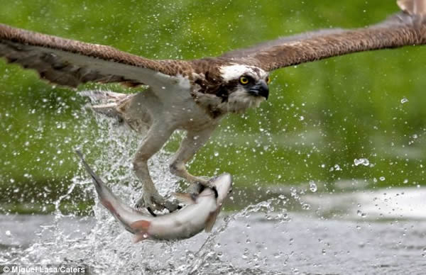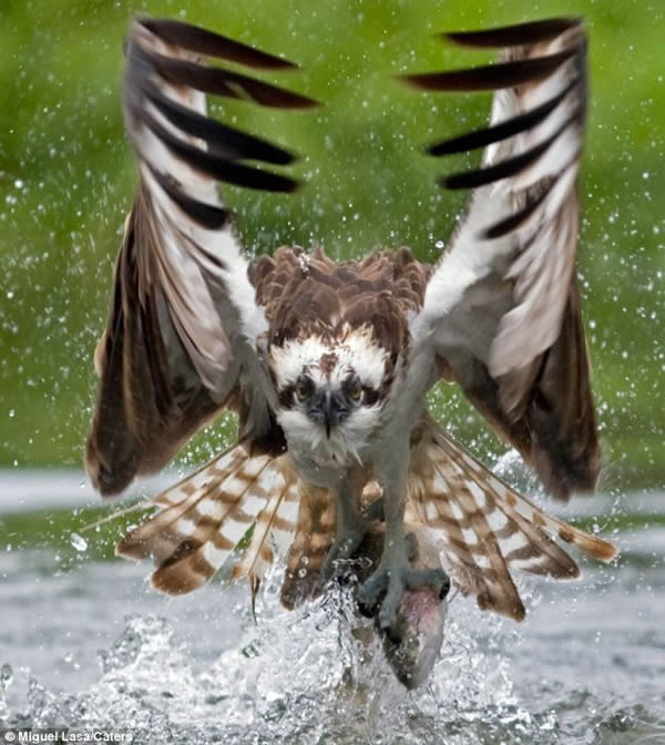 鱼鹰从空中俯冲至水下捕鱼 来源: 神秘的地球 时间:2012年8月13日 09:47 据英国《每日邮报》8月11日报道,近日,英国49岁摄影师米格尔(Miguel Lasa)在芬兰捕捉到鱼鹰从空中俯冲至水下捕鱼的精彩瞬间。只见鱼鹰以迅雷不及掩耳之势俯冲至水下,接着每只爪子各抓一条鱼飞出水面,收获一顿美餐。 据悉,鱼鹰是一种善于捕鱼的猛禽,为了捕捉到这一完美瞬间,米格尔每年夏天都会到芬兰守候。 鱼鹰从空中俯冲至水下捕鱼 鱼鹰从空中俯冲至水下捕鱼 鱼鹰从空中俯冲至水下捕鱼 鱼鹰从空中俯冲至水下捕鱼 上一篇 下一篇 TAG: 鱼鹰