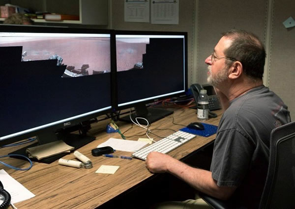 好奇号火星车成像仪首席研究员迈克尔·马林(Michael Malin)通过大屏幕重建令人惊讶的火星全景图,他透露还有更多关于这颗红色星球的图像正在传送回来,全景图像中清楚地显示出反推火箭发动机爆炸后产生的痕迹。此外,科学家认为火星上的土壤层比较浅,这有助于好奇号轻松获得岩石样本,来自加州帕萨迪纳技术研究所的科学家约翰·格勒青格(John Grotzinger)认为看起来我们可以看到火星盖尔撞击坑中的岩床底部,在这个深度的地表下将出现有价值的数据。