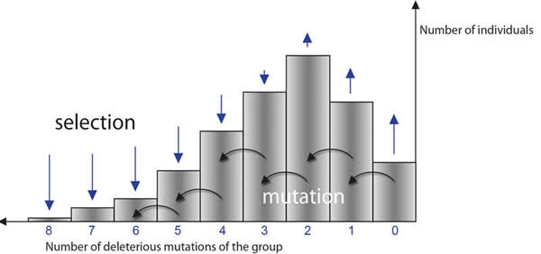 从原生动物到哺乳动物,进化创造了越来越多的复杂结构与特化组织,然而令人吃惊的是,绝大多数的基因变异都是有害的,特别是对于那些无法重组它们基因的无性繁殖生物物种来讲,有害变异会不断地积累。这一进程就是进化生物学中有名的“棘刺理论”(Muller’sratchet),这一理论由美国基因学家Hermann JosephMuller提出,他认为有害基因的不可逆性会最终导致物种一条“灭绝之路”走到底。在来自美国的同事的协助下,德国图宾根马克斯普朗克发育生物学研究所的Richard Neher定量地展示了棘刺理论如何发挥作用,以及为何许多物种在一拨一拨有害变异的攻击下却并没有最终灭绝的原因。