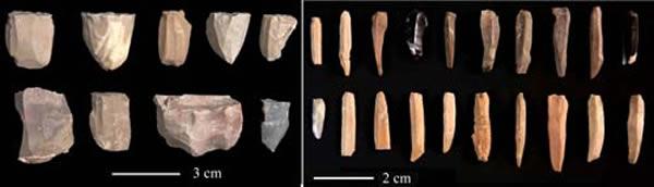 图3 第12地点出土的细石核(左)和细石叶(右)(裴树文供图)