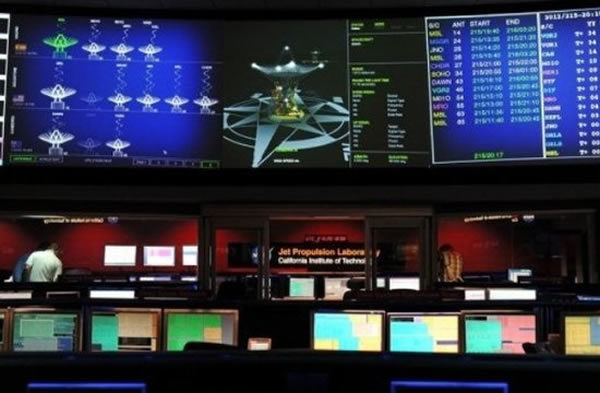 位于喷气推进实验室内的火星科学实验室着陆舱控制中心大屏幕