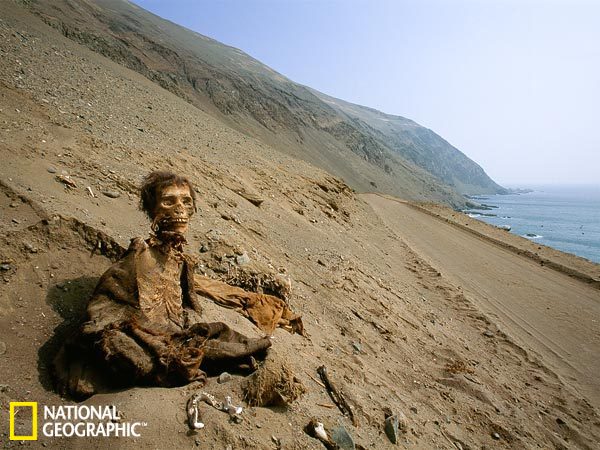 长期掩埋在智利阿塔卡马沙漠的干尸依旧保留着原来的皮肤、毛发和衣着。一项最新研究表明,古代新克罗人会利用自然环境使死者的尸体脱水变成木乃伊。这项技术在新克罗人文明的演变过程被发明出来。新克罗人的聚居地位于智利和秘鲁的海岸边,他们靠捕鱼为生。新克罗人大约在公元前5050年开始将尸体木乃伊化,这比埃及人制造木乃伊的时间还要早几千年。考古学家长久以来一直很好奇他们到底是如何完成这项工艺的,而且木乃伊还穿着从湿润的亚马逊盆地进口过来的衣物。该项研究负责人、智利圣地亚哥大学考古学家帕布罗-马克特表示,“我们的研究只是关于环境变化对社会复杂性突现作用研究的一个部分而已。而在这个案例中,阿塔卡马沙漠地区的文化也被干旱的气候深深影响了。直到目前为止,基本上所有的研究重点都集中在环境是如何让一个社会文明开始崩塌的。”