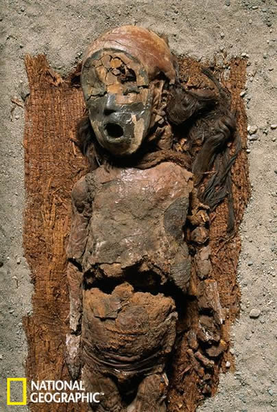 据美国国家地理网站报道,智利圣地亚哥大学考古学家在智利阿塔卡马沙漠中发现了迄今最古老的木乃伊--新克罗木乃伊。考古学家研究发现,智利阿塔卡马沙漠的新克罗人在7000多年前就已经学会了木乃伊的制作,新克罗木乃伊比埃及木乃伊的历史还要古老几千年。不同于埃及人只为帝王和贵族制作木乃伊的做法,新克罗人会尊重每一位死者并为他们制作木乃伊。因为受到地球上最干燥气候的保护,长期掩埋在智利阿塔卡马沙漠中的新克罗人木乃伊依旧能够保留着原来的皮肤、毛发和衣着。