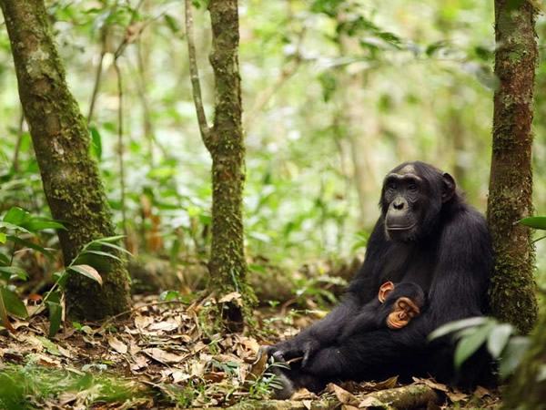 来自乌干达基巴莱国家公园的黑猩猩妈妈Jolie和宝宝Zawinul帮助揭示了黑猩猩的平均世代长度。