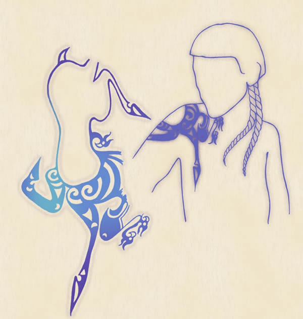 在武士肩膀上清晰的纹身图像,这与乌卡克公主身体上的纹身十分接近