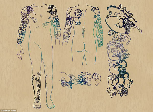 这些精美纹身已有2500多年历史,这具神秘千年女尸被称为“乌卡克公主”,埋葬于俄罗斯的永久冻土地带。她身体上的纹身包括神秘的动物,专家认为这些精美纹身图案可以显示出死者的年龄,并证明她是古代巴泽雷克游牧民族居民,公元前5世纪希腊历史学家希罗多德描述过这个民族。