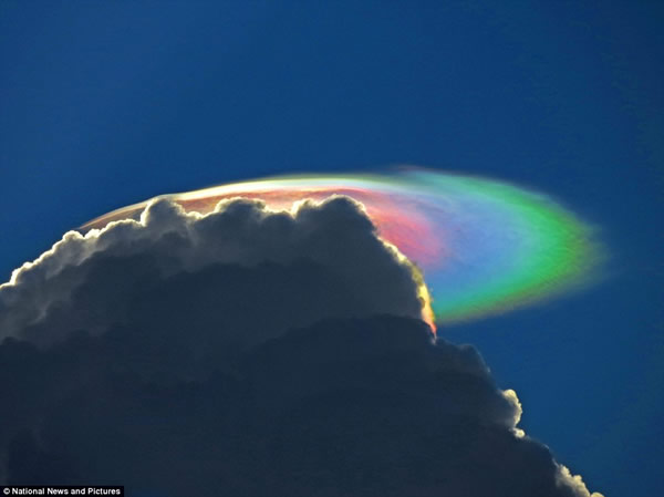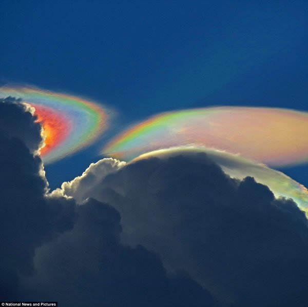 据英国《每日邮报》8月15日消息,近日,美国佛罗里达州南部德尔雷海滩(Delray Beach)附近出现了极为罕见的惊人场景。目击者看到,在黑色风暴云后面,炫目壮观的火彩虹云悬浮在半空中,像是多彩的飞碟在空中悬浮。它们不断变幻, 直到最后慢慢消失,形成了震撼人心的视觉效果。