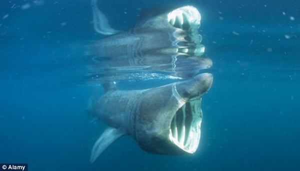 生物学家称这可能是两条浮到海面的姥鲨