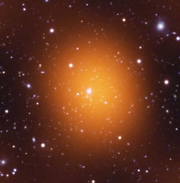 微波、可见光以及紫外线波段叠加下呈现出“凤凰”超星团的外观